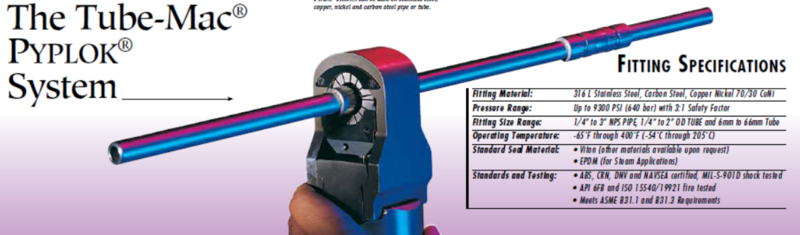 • PYPLOK® fittings are permanently swaged in “seconds” – reduces on-site time and labor.